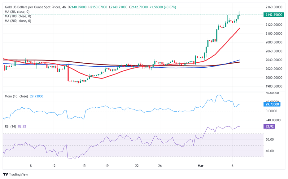周四(3月7日)亚市早盘中,现货黄金在昨日大涨之后保持坚挺走势,金价目前位于2150美元/盎司附近。FXStreet首席分析师Valeria Bednarik撰文,对黄金技术前景进行分析。