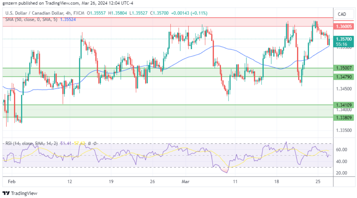 如果美元/加元跌破50日移动均线1.3552,它将走向位于1.3480 – 1.3500范围内的支撑位。