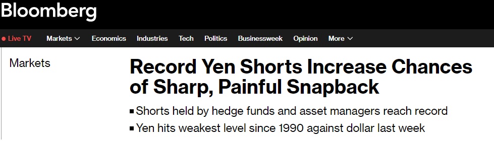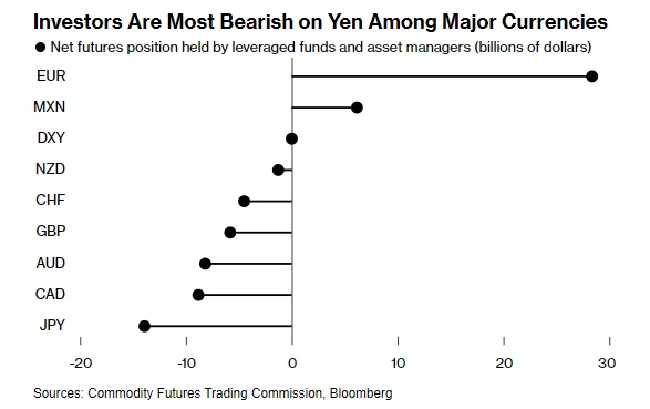 根据彭博的计算,这也是九种主要货币中最大的空头头寸,这使得日元特别容易出现反弹。