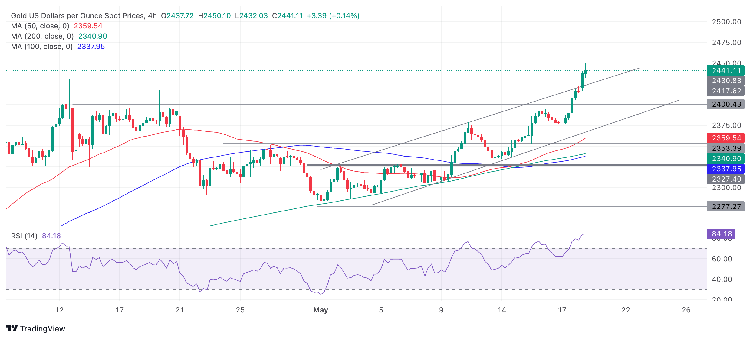 周一(5月20日),黄金市场出现剧烈波动,金价在飙升至历史高位2450美元/盎司后显著回落,一度跌破2410美元/盎司。随后金价收盘回到2425美元/盎司附近。FXStreet分析师Joaquin Monfort撰文,对金价走势进行分析和预测。