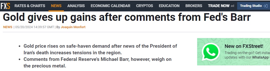 XM外汇跟单伊朗总统去世影响短暂,美联储官员讲话打压多头士气,分析师:金价后市仍可能剑指2500