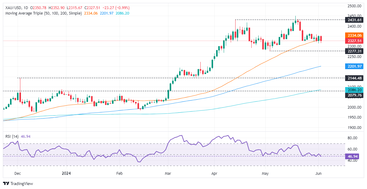 FXStreet分析师Christian Borjon Valencia表示,现货黄金价格已跌破50日简单移动平均线(SMA)2334美元/盎司。价格走势和有利于卖方的势头转变可能为回调铺平道路。相对强弱指数(RSI)转为看跌,跌破50中线,为金价进一步下跌打开大门。