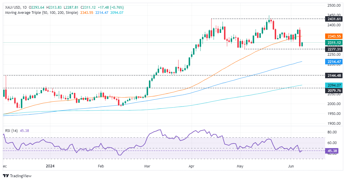 周一(6月10日),现货黄金在上一交易日暴跌后反弹17美元,收报2310美元/盎司关口附近,周二(6月11日)亚市,现货黄金震荡微跌,目前交投于2308.95美元/盎司附近。FXStreet分析师Christian Borjon Valencia最新撰文,对金价技术走势进行分析。
