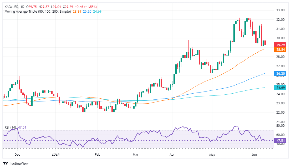 周二(6月11日),现货白银遭遇猛烈抛售,银价大跌约1.6%,收于29.30美元/盎司下方,盘中一度触及29.00关口,为近三周新低。FXStreet分析师Christian Borjon Valencia最新撰文,对银价技术前景进行分析。