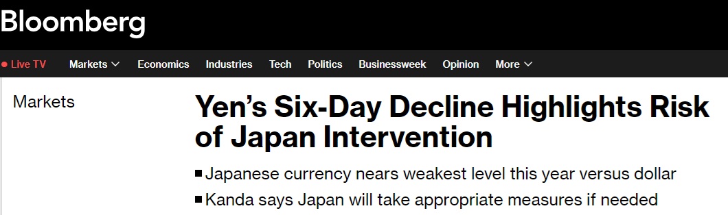 XM外汇跟单日元创下自3月以来最长贬值纪录,加大日本官员将再次“干预”风险