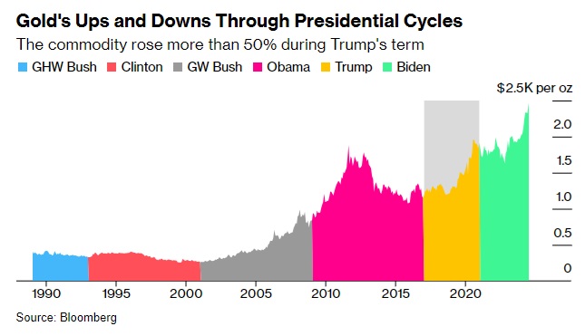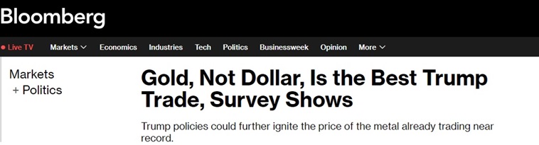 彭博社指出,特朗普的政策可能会进一步推高已经接近纪录高位的金价。