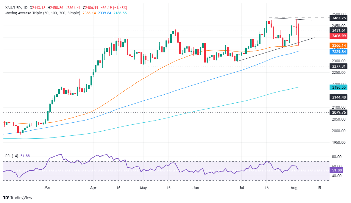 FXStreet分析师Christian Borjon Valencia写道,在周一欧洲交易时段,金价回落至50日简单移动平均线(SMA)的2365美元/盎司,之后反弹并收复2400美元/盎司。尽管出现复苏,但势头仍有利于卖方。