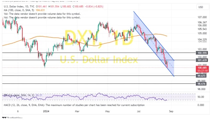 受美联储主席鲍威尔鸽派言论打压,上周五(8月23日)美元指数大跌。知名财经网站FXDailyReport分析师Nicholas Kitonyi上周五撰文,对美元指数后市走势进行分析。