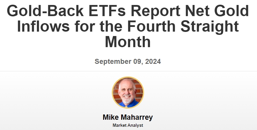 市场分析师迈克·马哈瑞(Mike Maharrey)表示,黄金ETF连续第四个月增加黄金净持有量,各地区基金均出现黄金净流入,西方基金领涨。全球范围内,黄金ETF持有量8月份增加了28.5吨黄金。