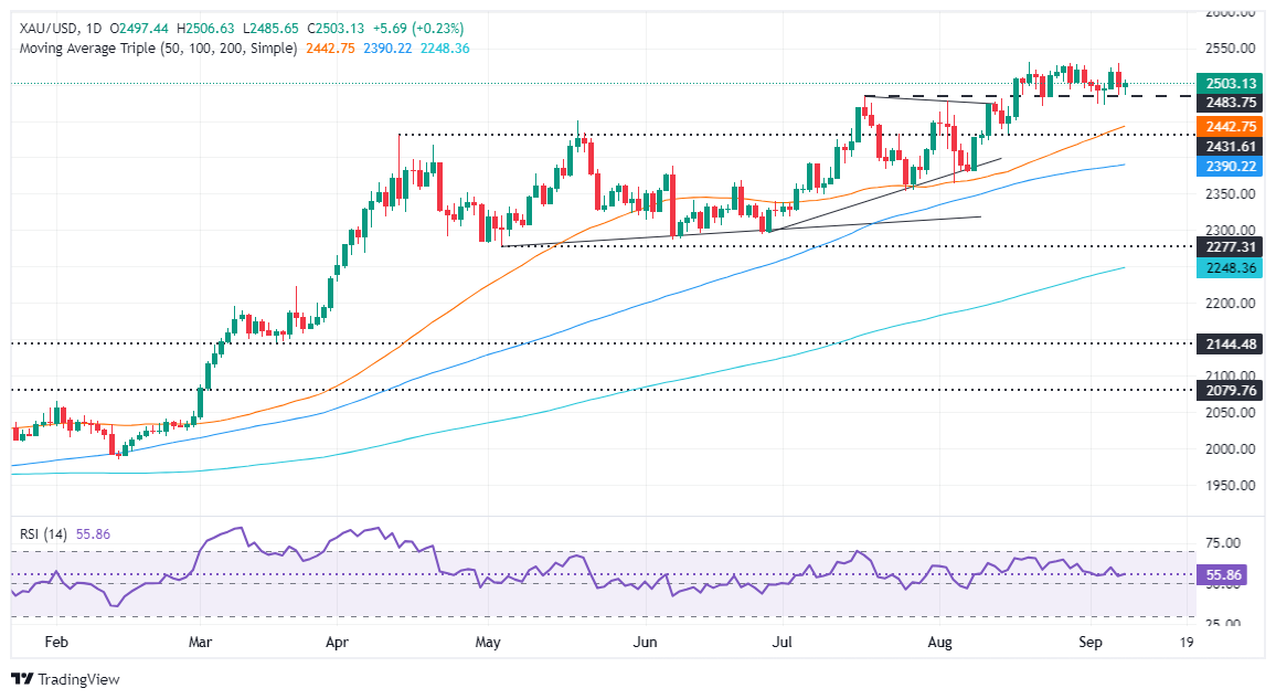 周一(9月9日),现货黄金在一度跌至2485美元/盎司后大幅反弹,最终收盘在2500上方,收报2506.04美元/盎司。FXStreet分析师Christian Borjon Valencia撰文,对金价技术走势进行分析。